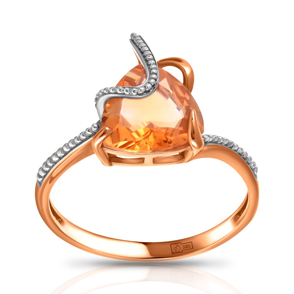 Кольцо из золота с цитрином с фианитами
