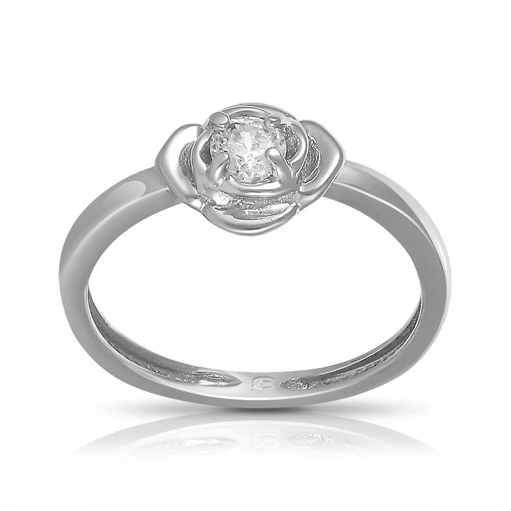 Кольцо Цветок из серебра с фианитом