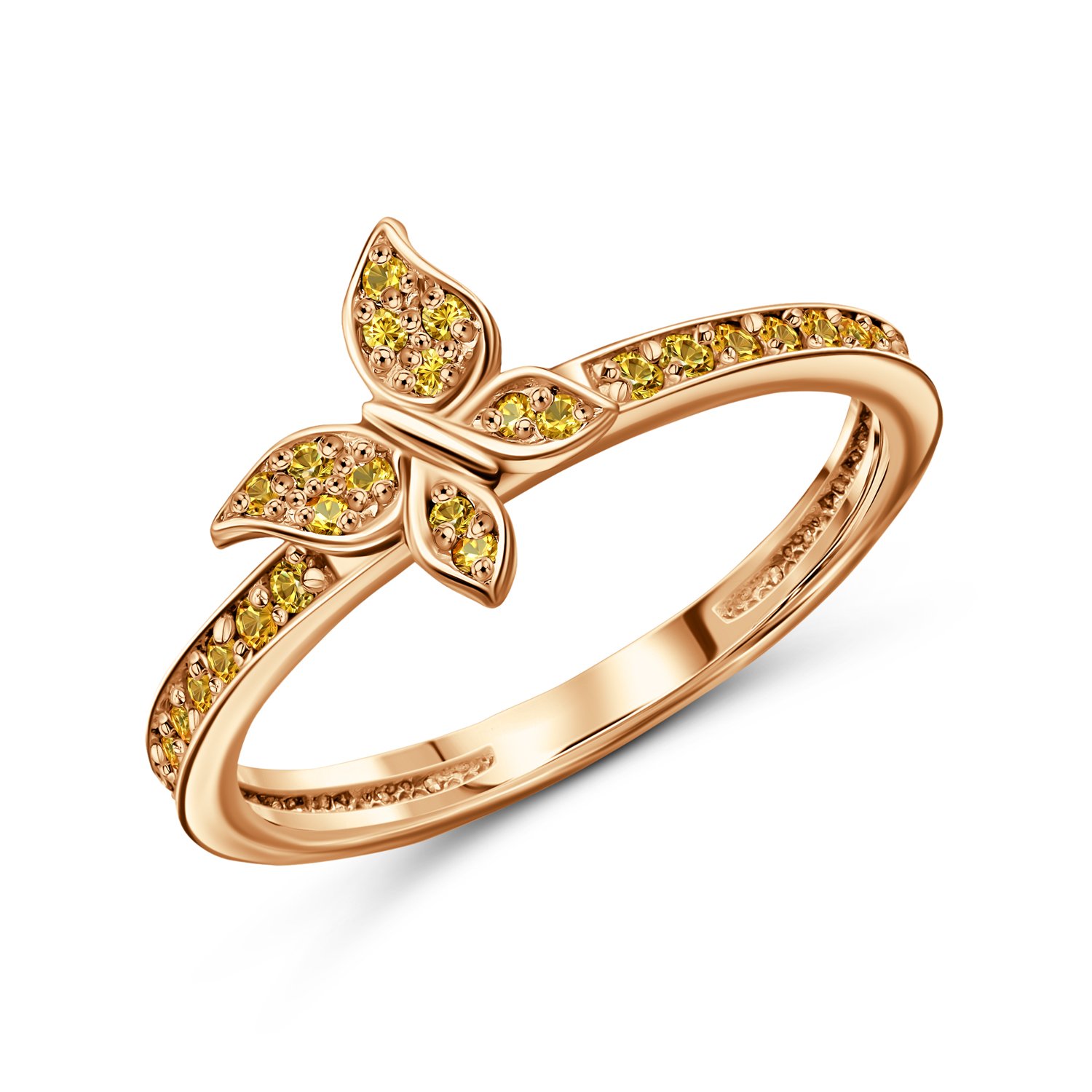 Серебряное кольцо Бабочка с фианитами и позолотой