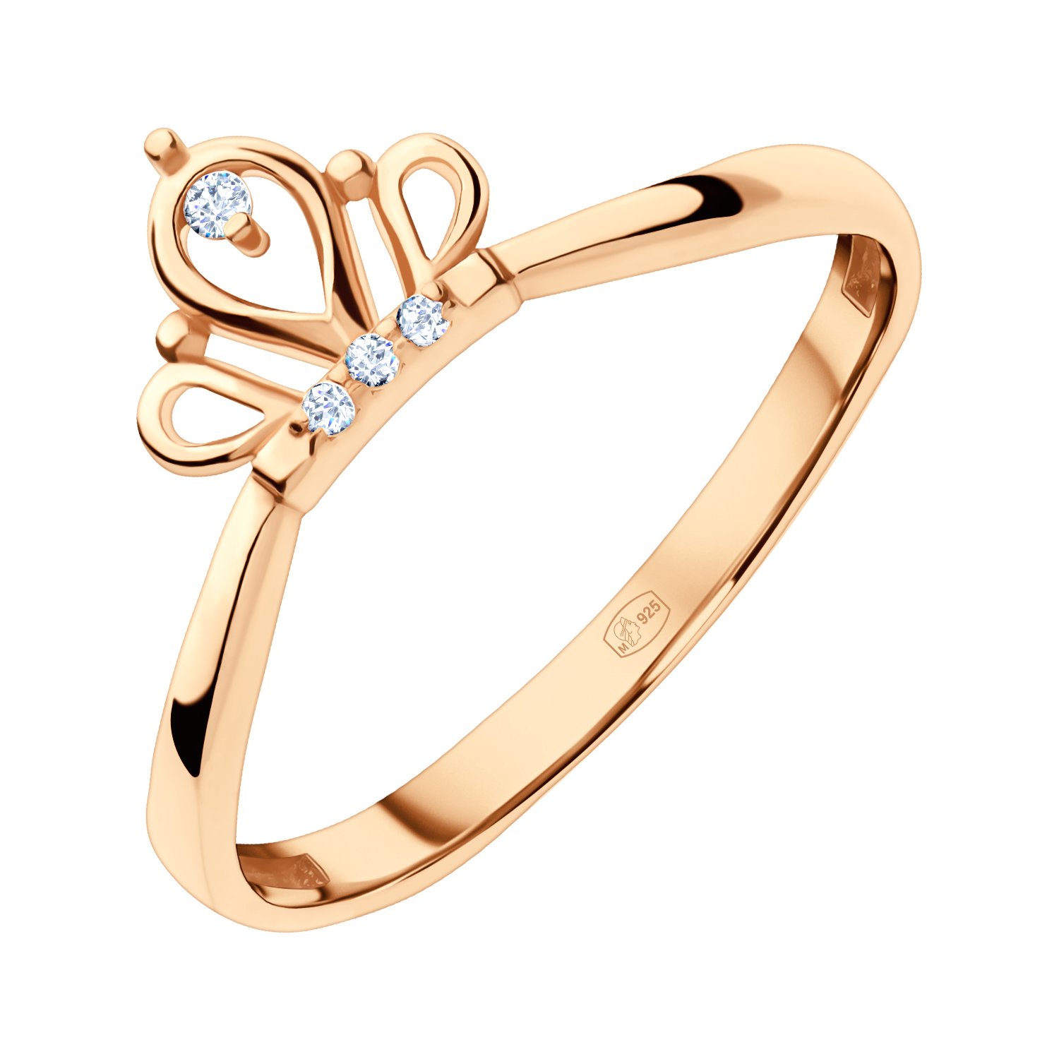 Серебряное кольцо Корона с фианитами и позолотой