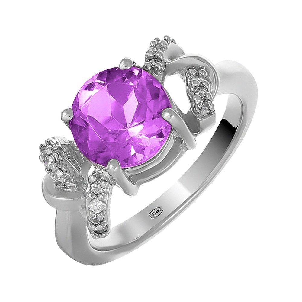 Серебряное кольцо с александритом и фианитами с родированием