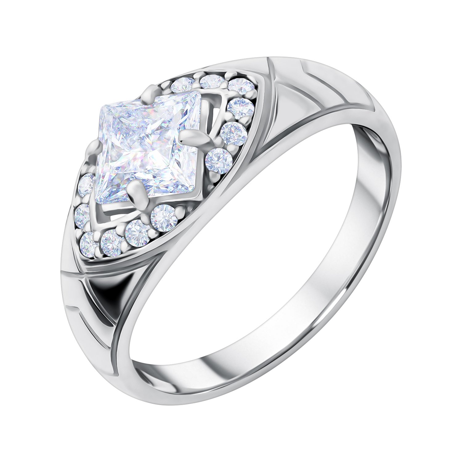 Серебряное кольцо с фианитами и родированием