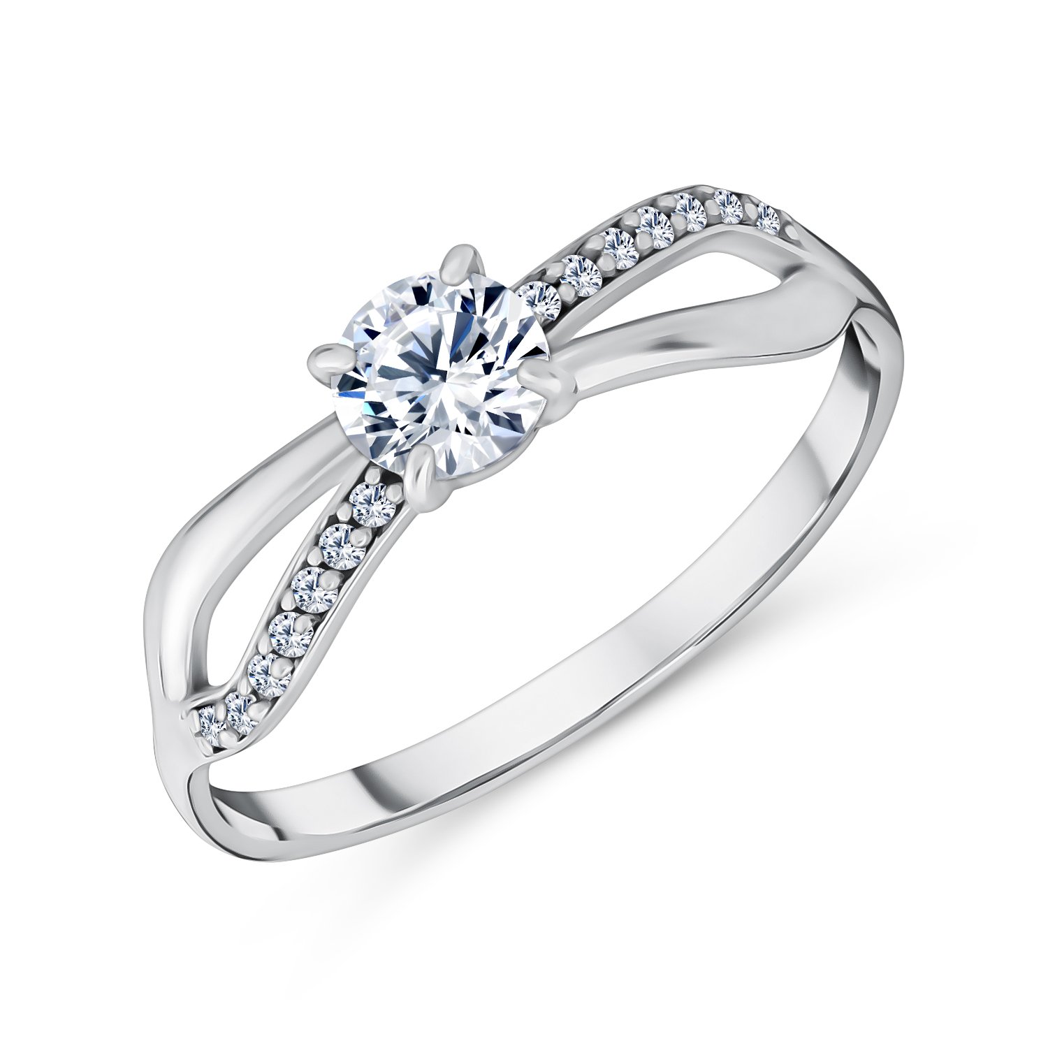 Серебряное кольцо с фианитами и родированием
