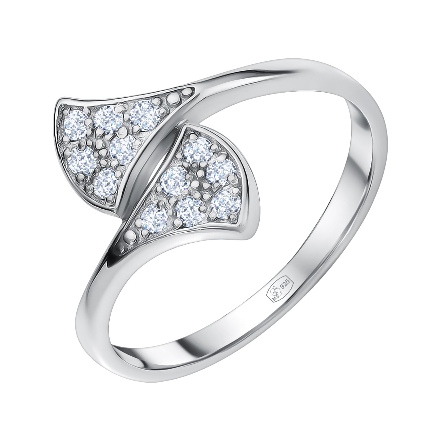 Серебряное кольцо с фианитами и родированием