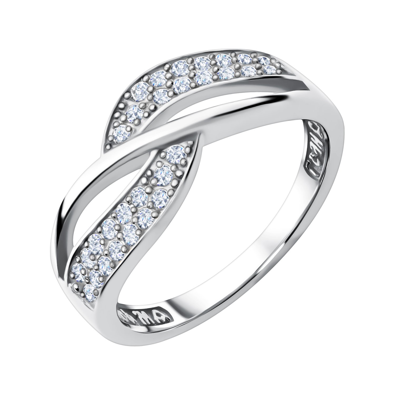 Серебряное кольцо с фианитами и родированием