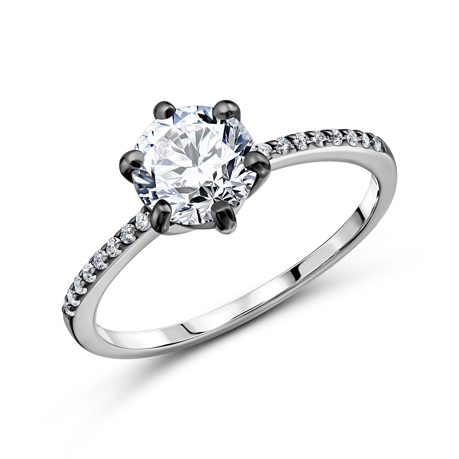 Серебряное кольцо с фианитами и родированием