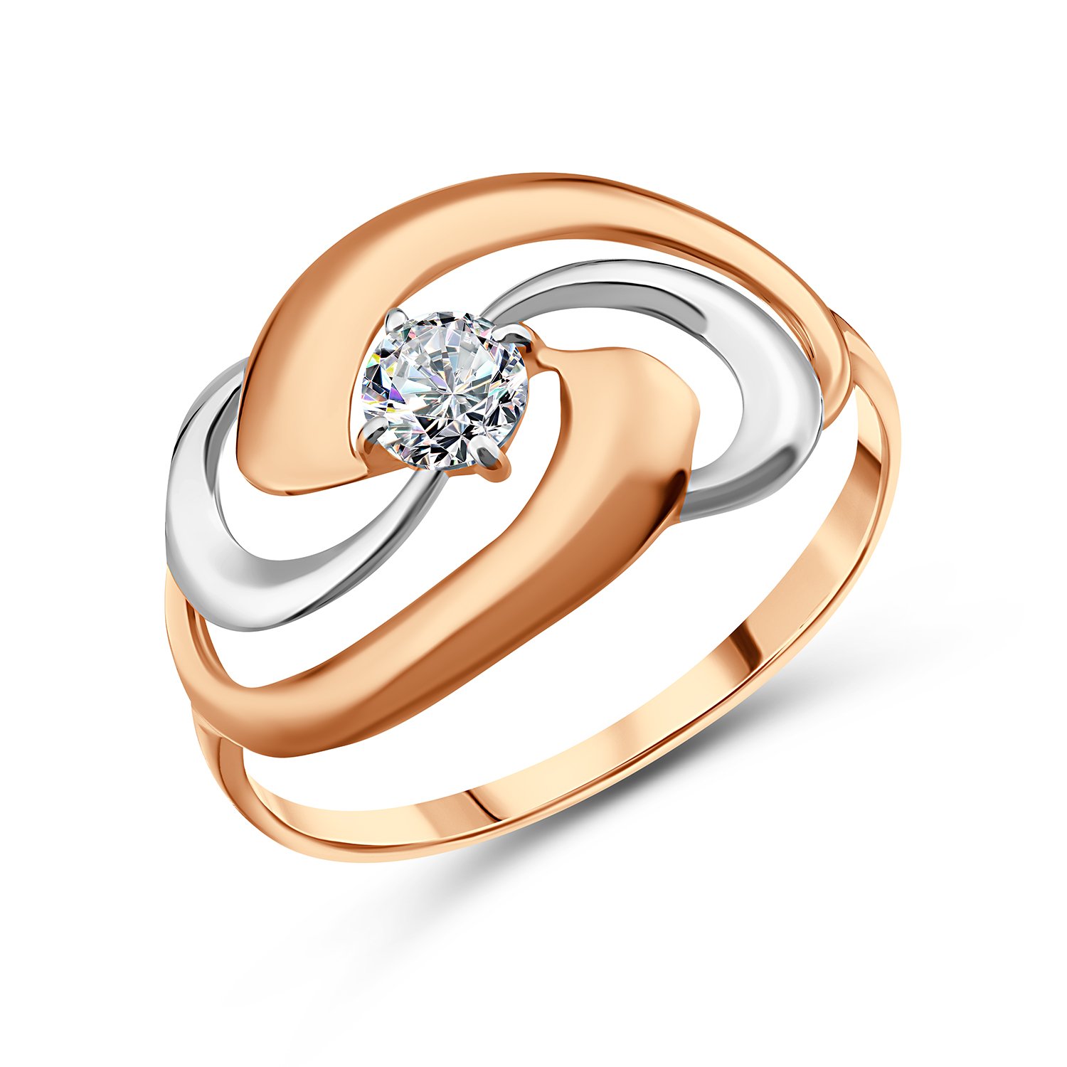 Серебряное кольцо с фианитом и позолотой с родированием