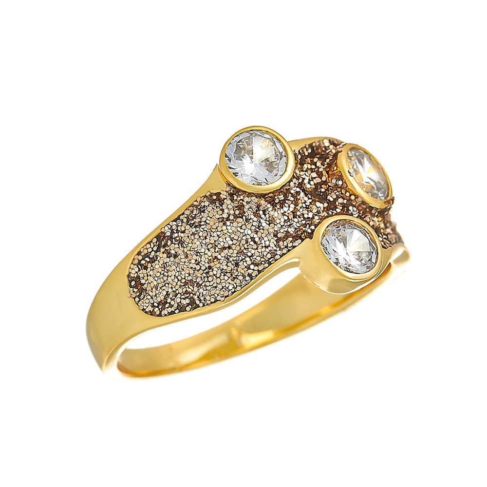 Серебряное кольцо с глиттером и фианитами с позолотой