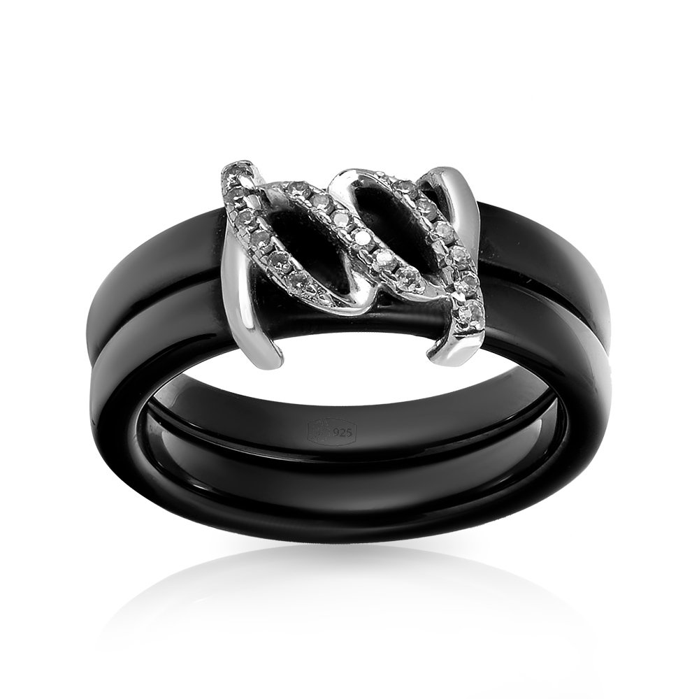Серебряное кольцо с керамикой и фианитами