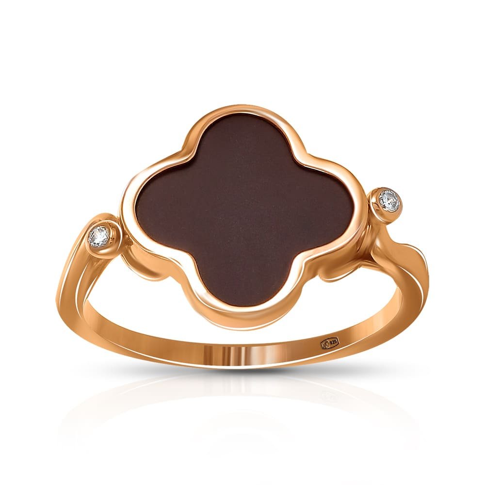 Серебряное кольцо с керамикой и фианитами из коллекции КЛЕВЕР