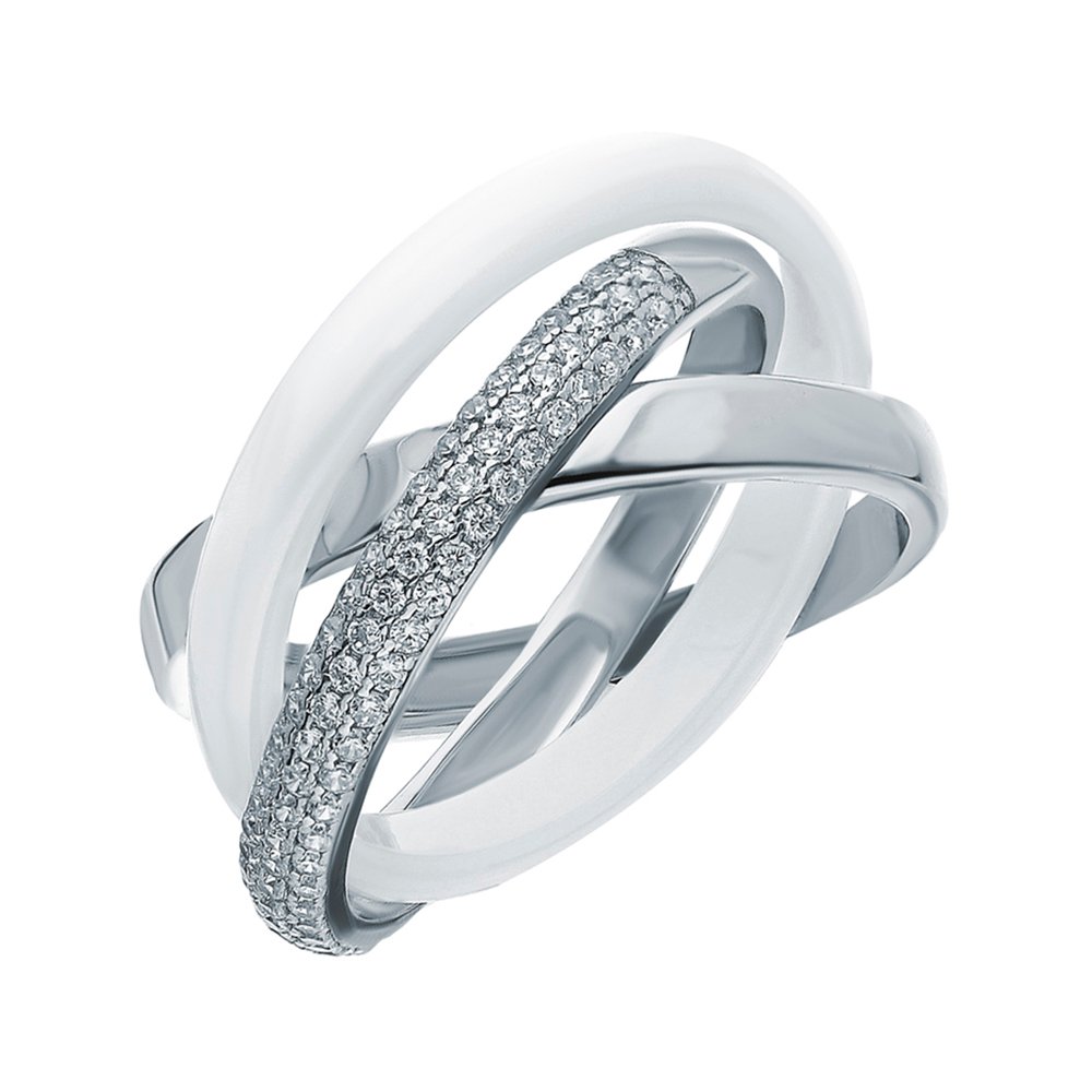 Серебряное кольцо с керамикой и фианитами с родированием