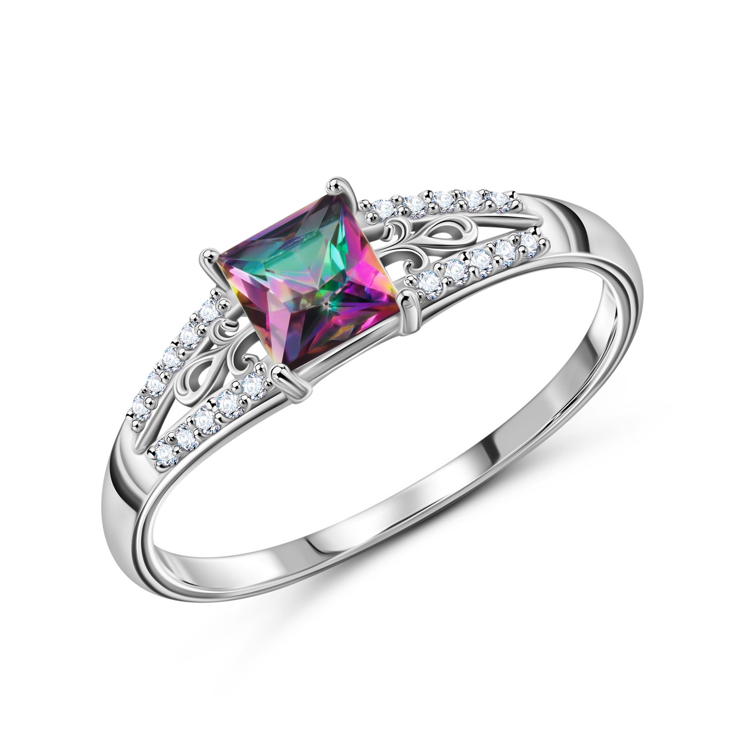 Серебряное кольцо с кварцем и фианитами с родированием