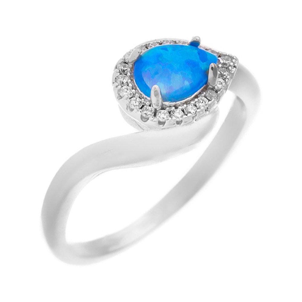 Серебряное кольцо с опалом и фианитами с родированием