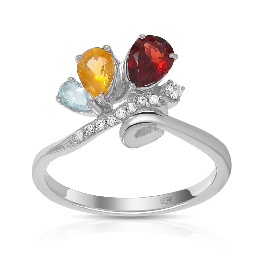 Серебряное кольцо с топазом и цитрином с гранатом и фианитами