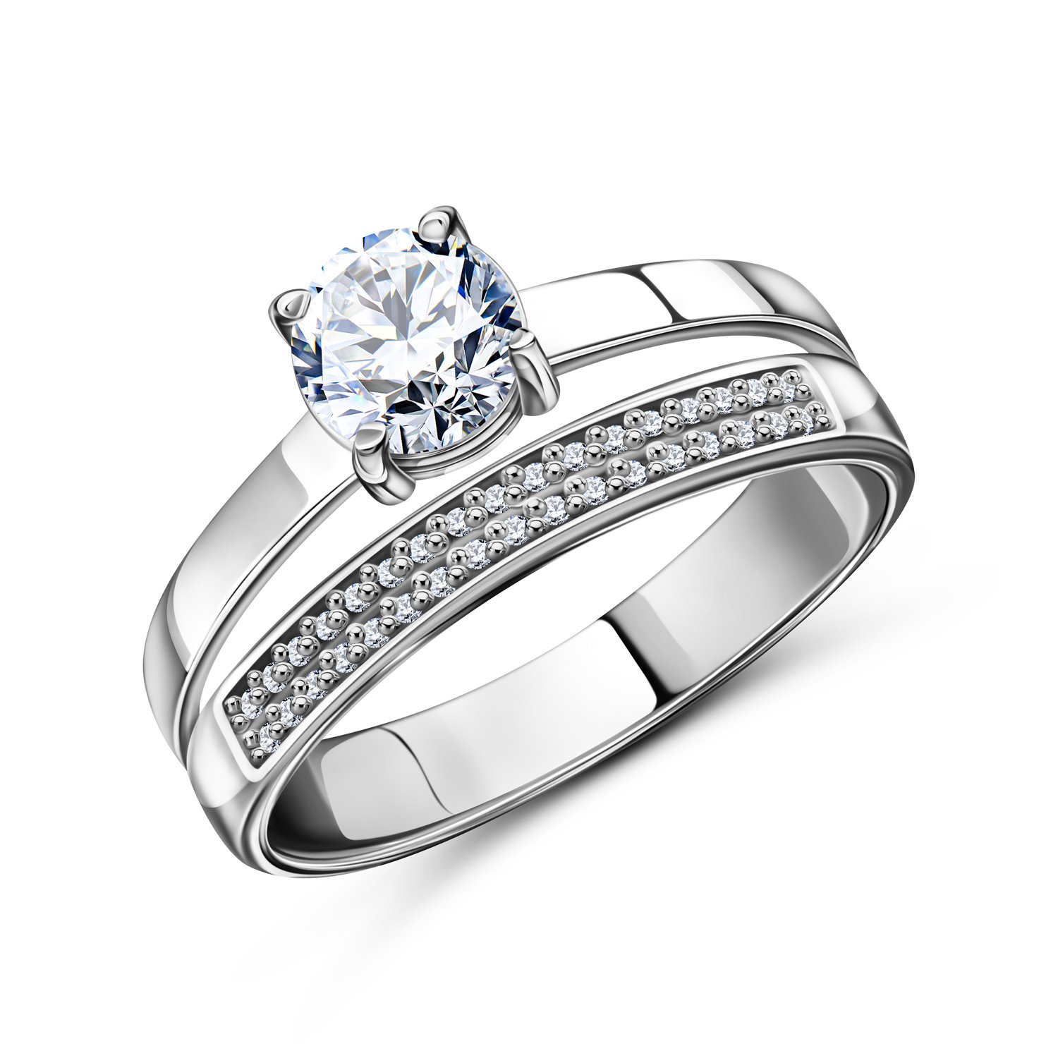 Серебряное кольцо с ювелирным кристаллом и фианитами с родированием