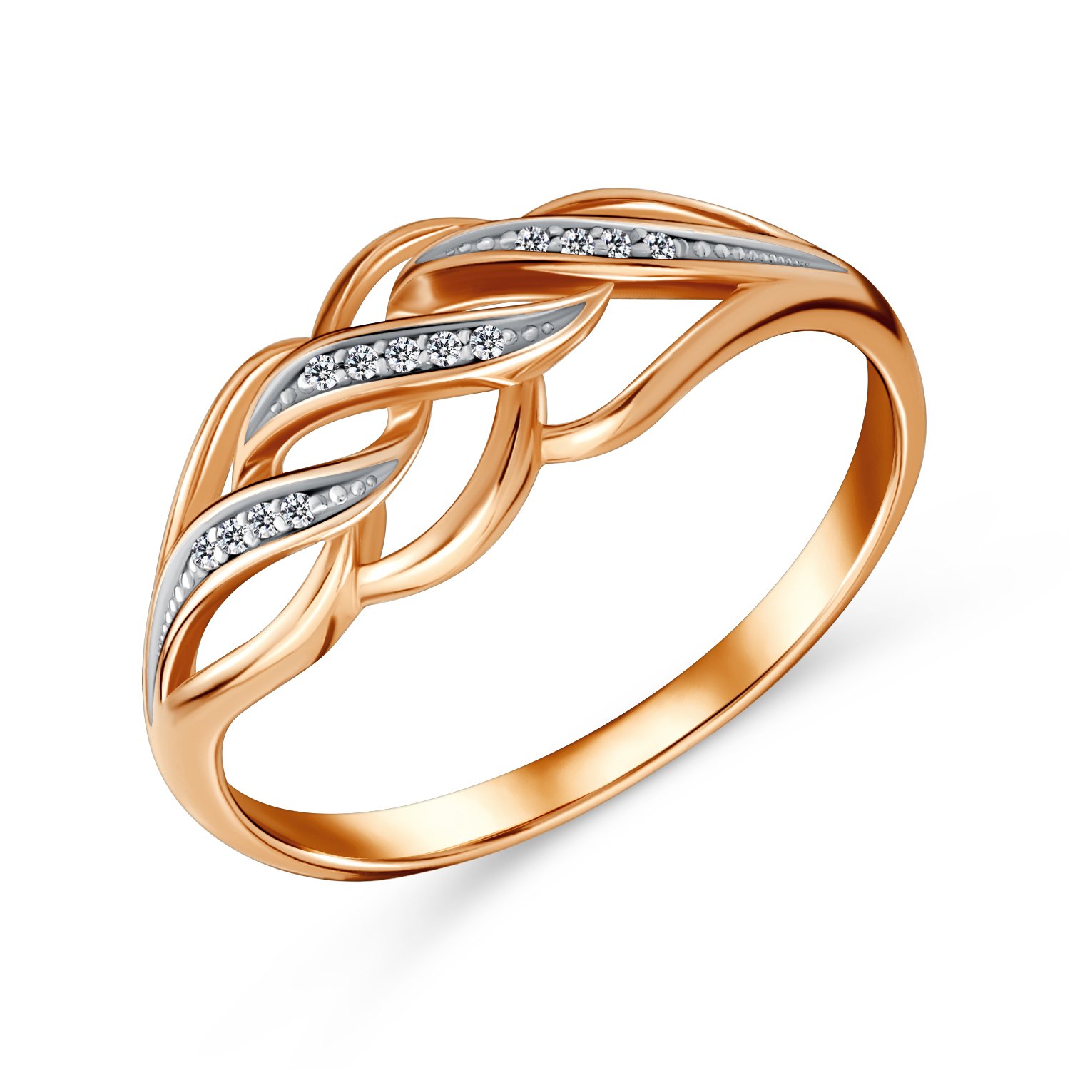 Золотое кольцо с бриллиантами и родированием