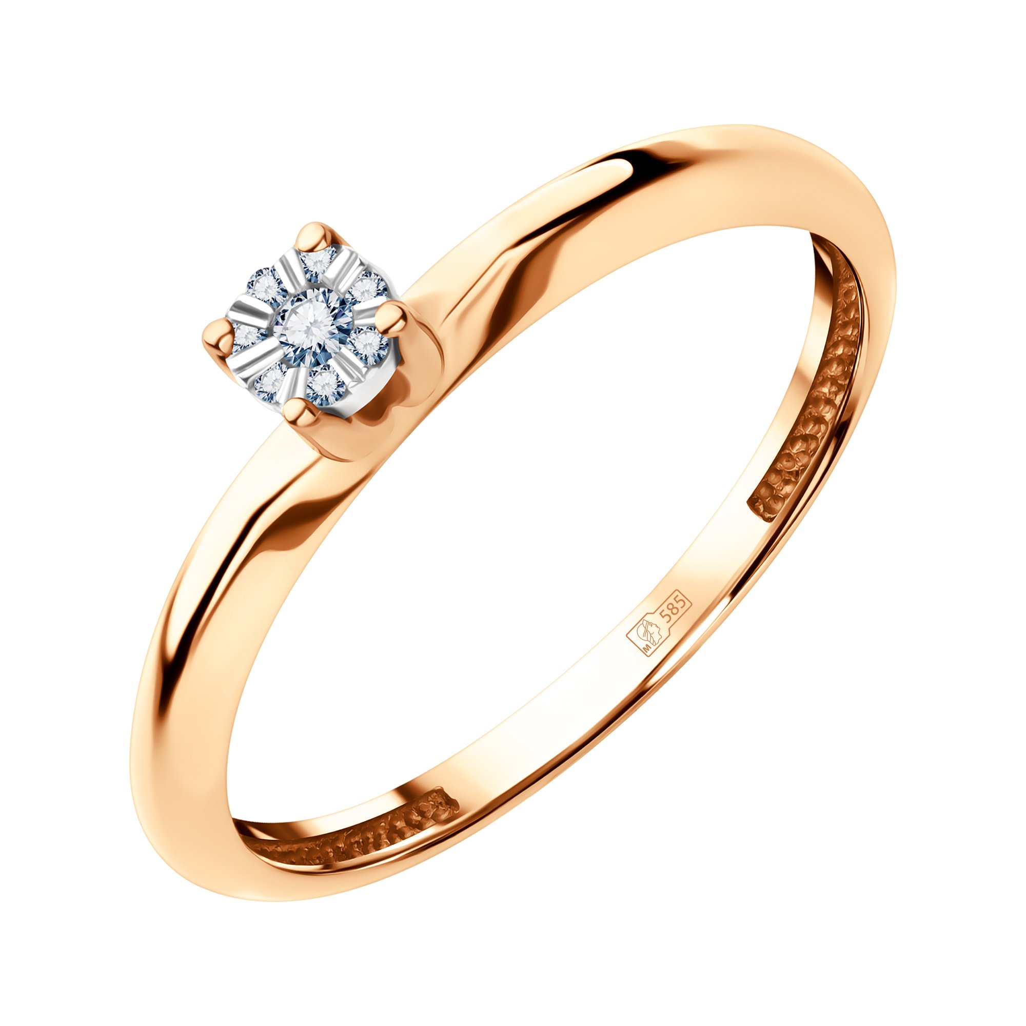 Золотое кольцо с бриллиантами и родированием