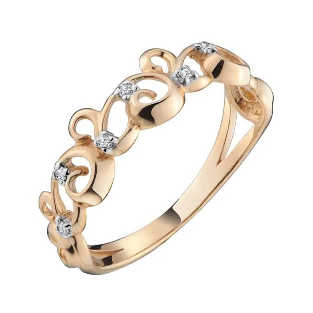 Золотое кольцо с бриллиантами и родированием