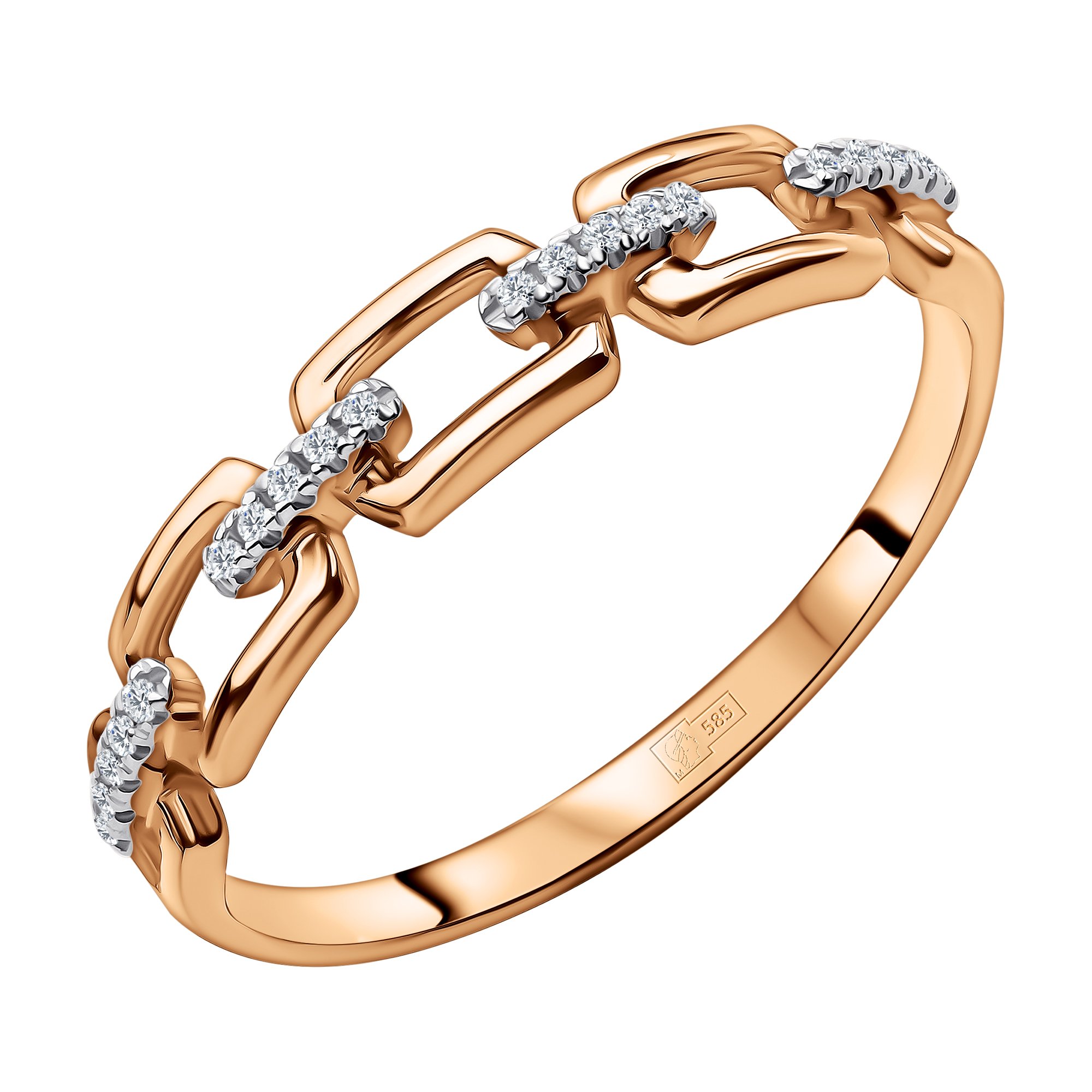 Золотое кольцо с бриллиантами и родированием