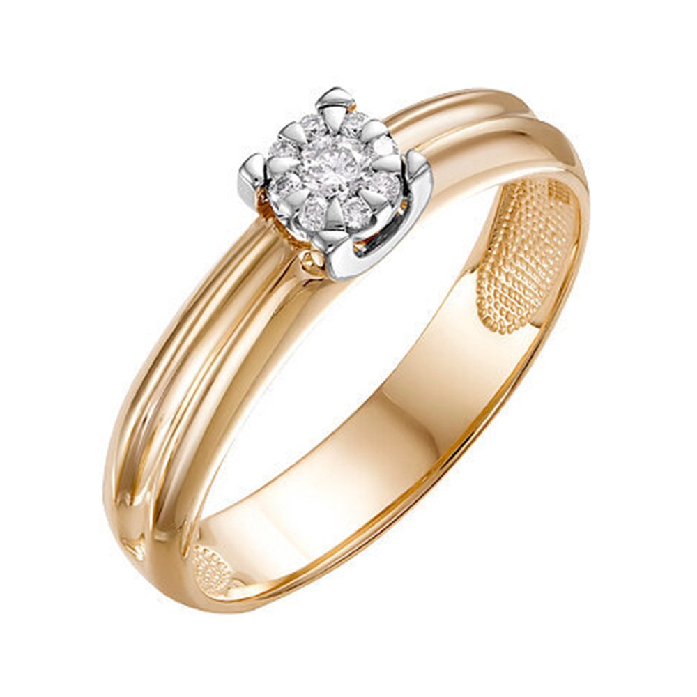 Золотое кольцо с бриллиантами и родированием с алмазной гранью