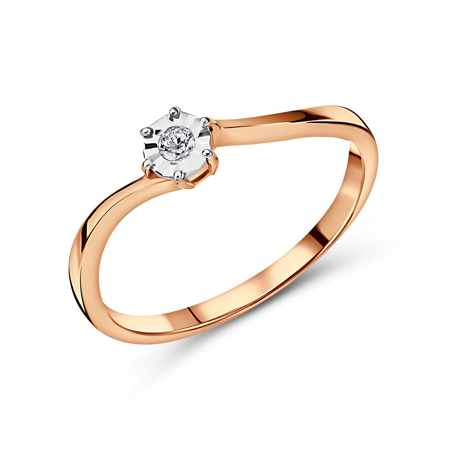Золотое кольцо с бриллиантом и алмазной гранью с родированием
