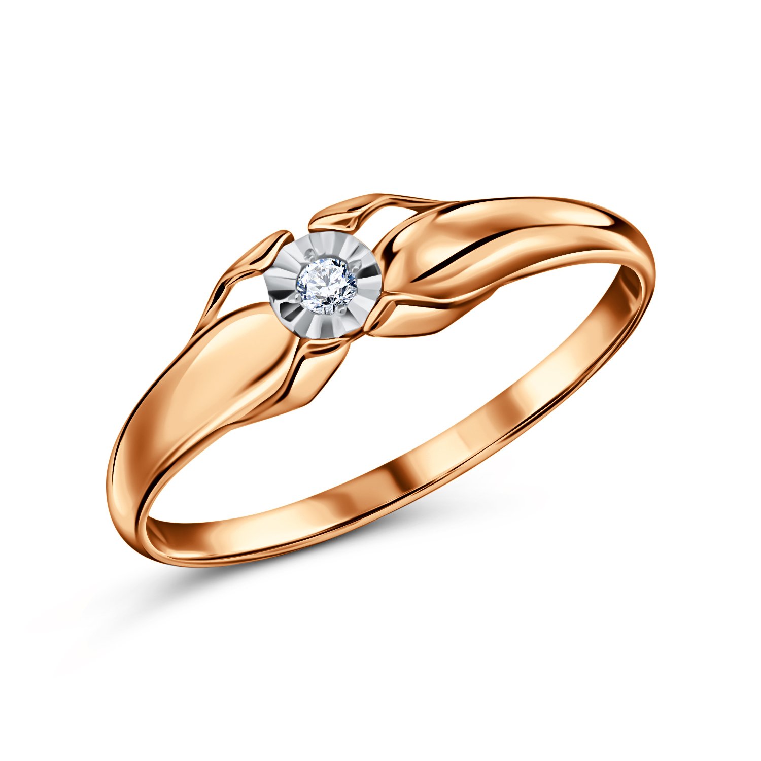Золотое кольцо с бриллиантом и алмазной гранью с родированием