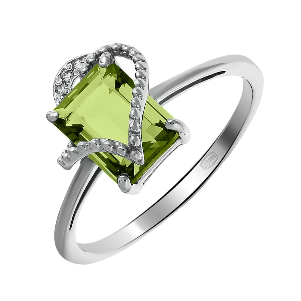 Золотое кольцо с хризолитом и фианитами