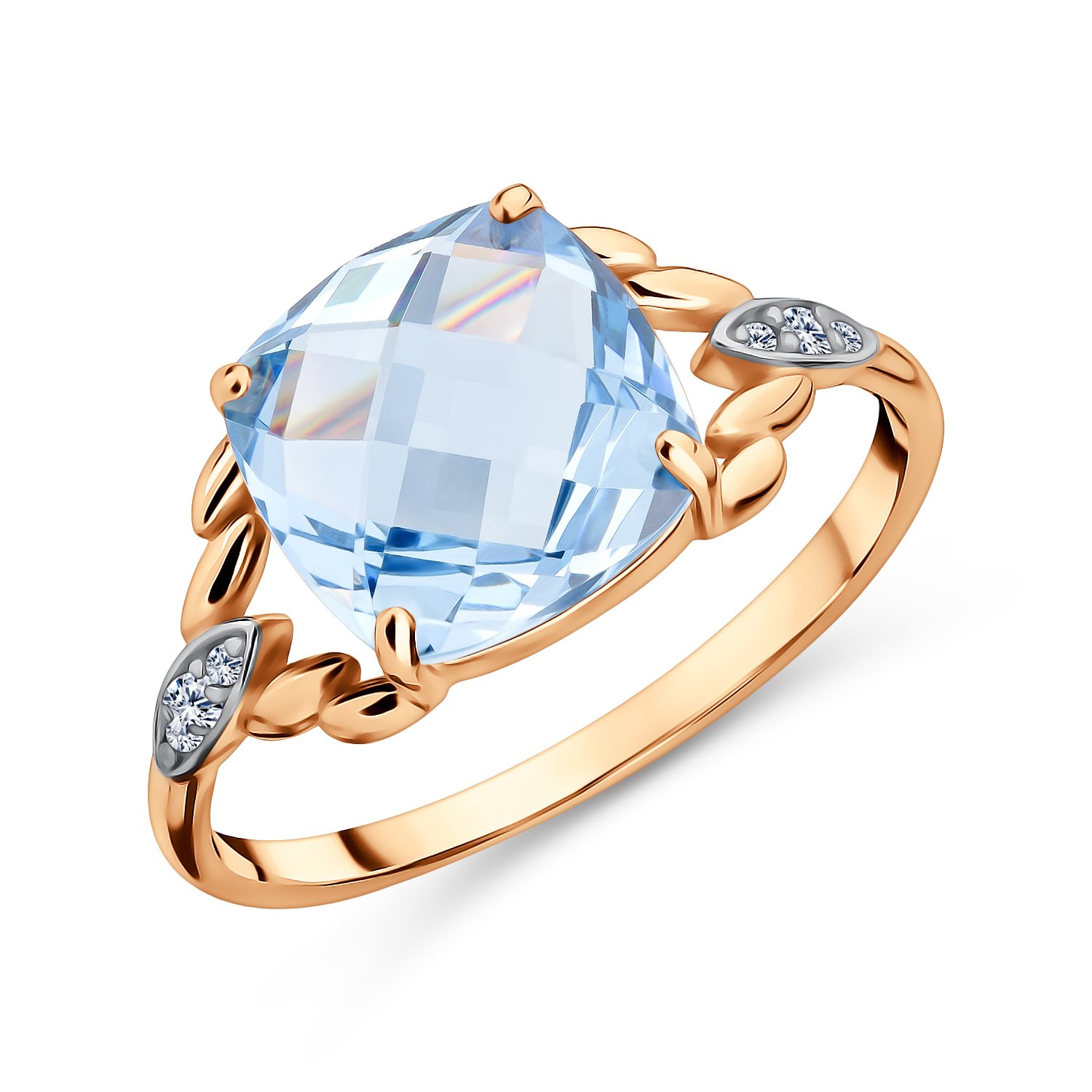 Золотое кольцо с топазом Sky и фианитами с родированием